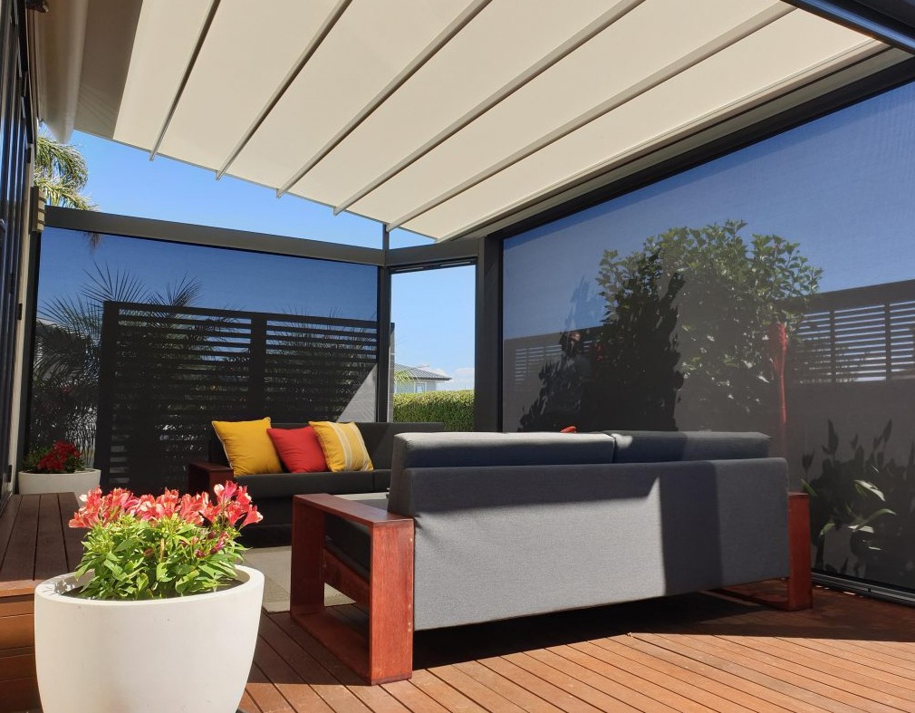 Ke každý naší bioklimatické pergole můžete zakoupit elektrickou screenovou roletu.