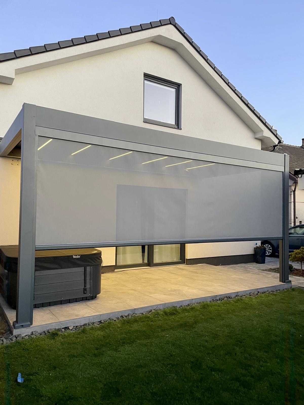 Ke každé naší bioklimatické pergole můžete zakoupit elektrickou screenovou roletu.